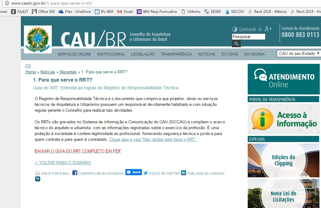 Exemplo de RRT (corresponde à ART do CREA, mas é do CAU)