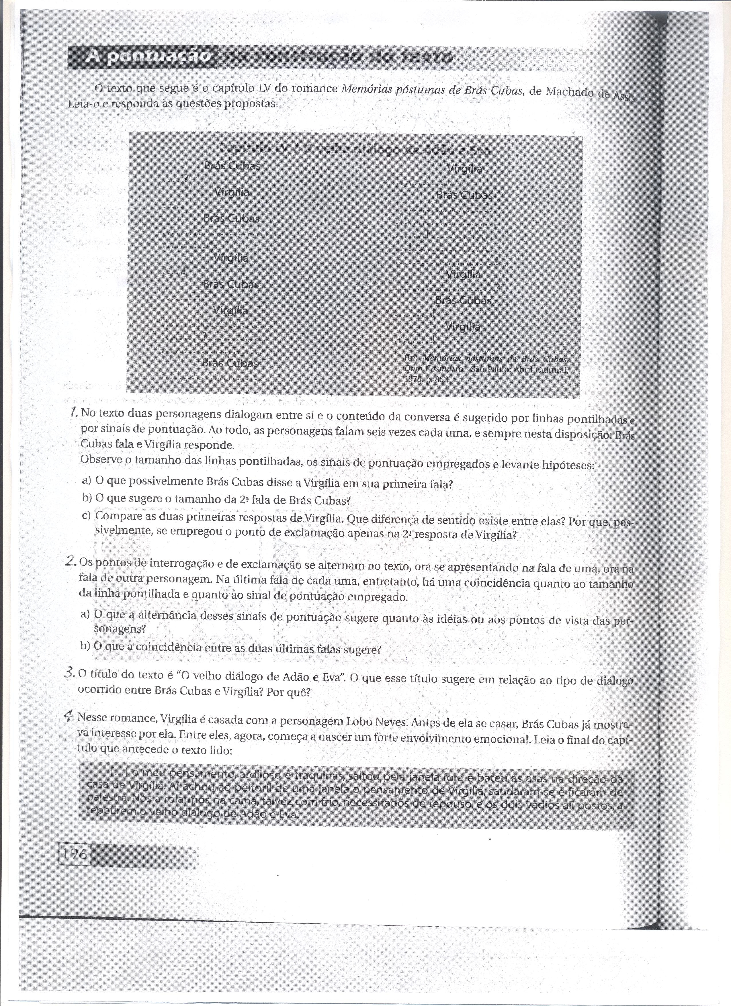 Primeira parte de exercício sobre sinais de pontuação na língua portuguesa.